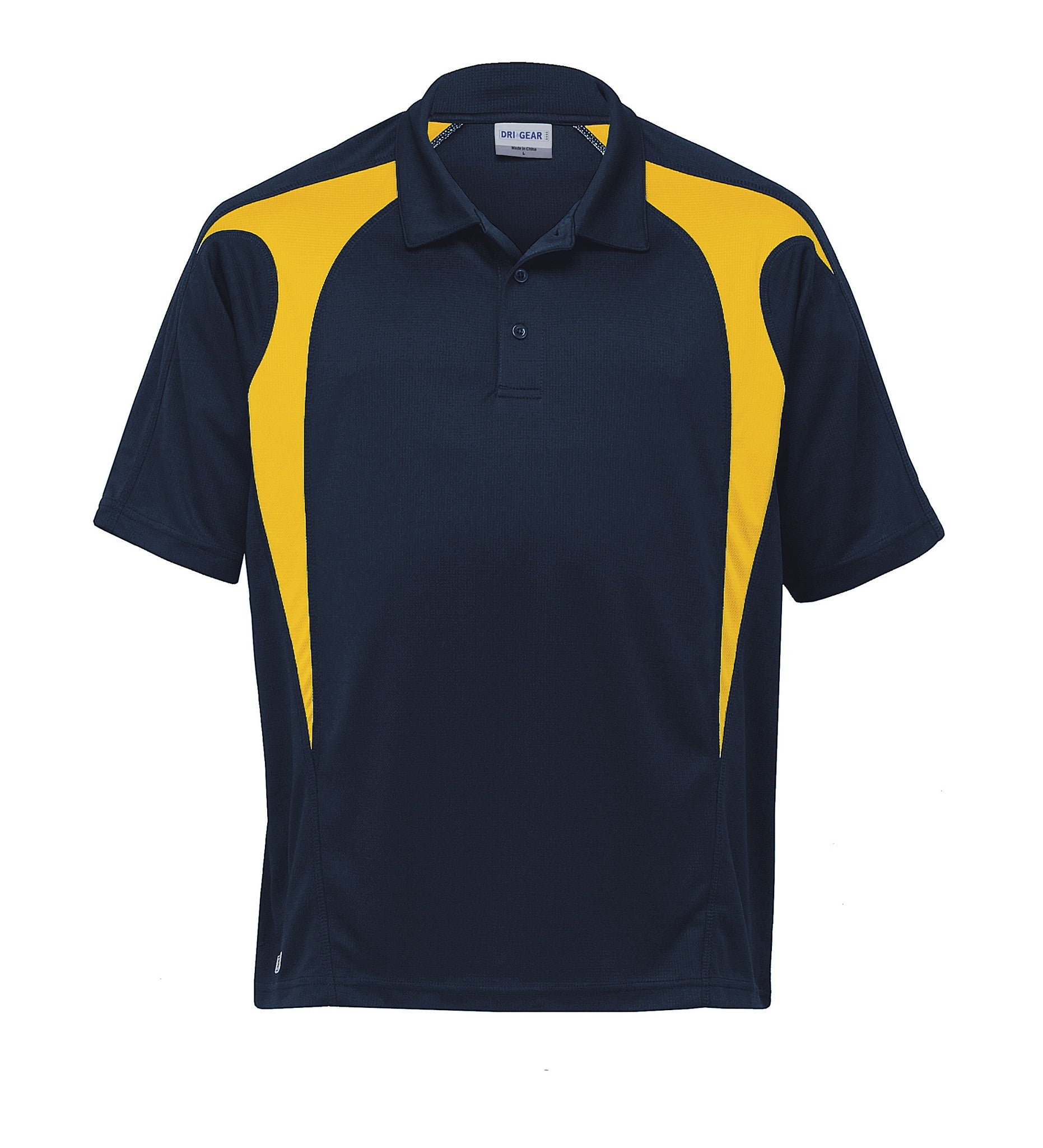140gsm 100% micro poly square weave , Moisture wicking , Classic fit , Contrast panels with cover stitch detailing , Raglan sleeve , Self fabric collar , Buttoned plaquet , UV protection 25 , DRI GEAR reflective badge on straight hem.